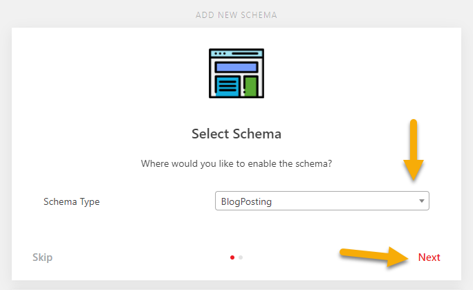 Chọn kiểu schema cho nội dung, nó có rất nhiều, ở đây tôi chọn BlogPosting, vì đây là dạng bài blog: