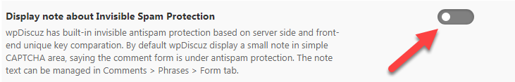 Các bạn làm như sau: Settings > Comment Form > Display note about Invisible Spam Protection (ở mục này các bạn bỏ chọn như hình bên dưới)