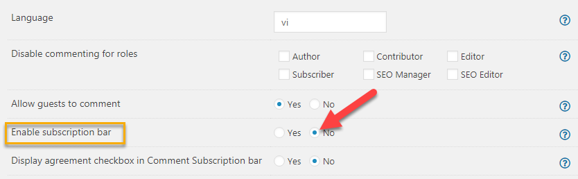 Các tính năng mặc định của wpDiscuz có thể không cần thiết với một số người. Sau đây là những đề xuất của cá nhân mình nên ẩn những tính năng sau (được khoanh trong khung màu vàng):