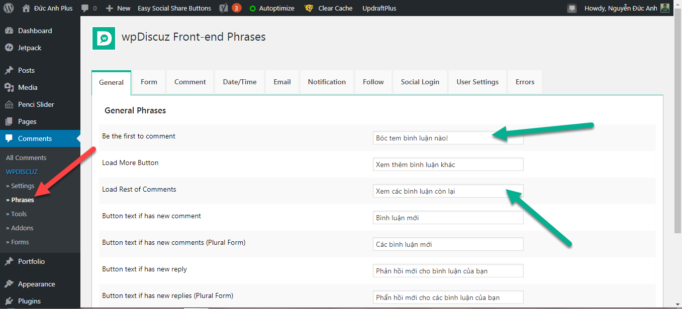 Có rất nhiều phần nếu bạn muốn Việt hóa toàn bộ, nếu muốn nhanh bạn chỉ cần Việt hóa những phần trọng yếu mà bản thấy cần sửa ở giao diện bên ngoài của bình luận.