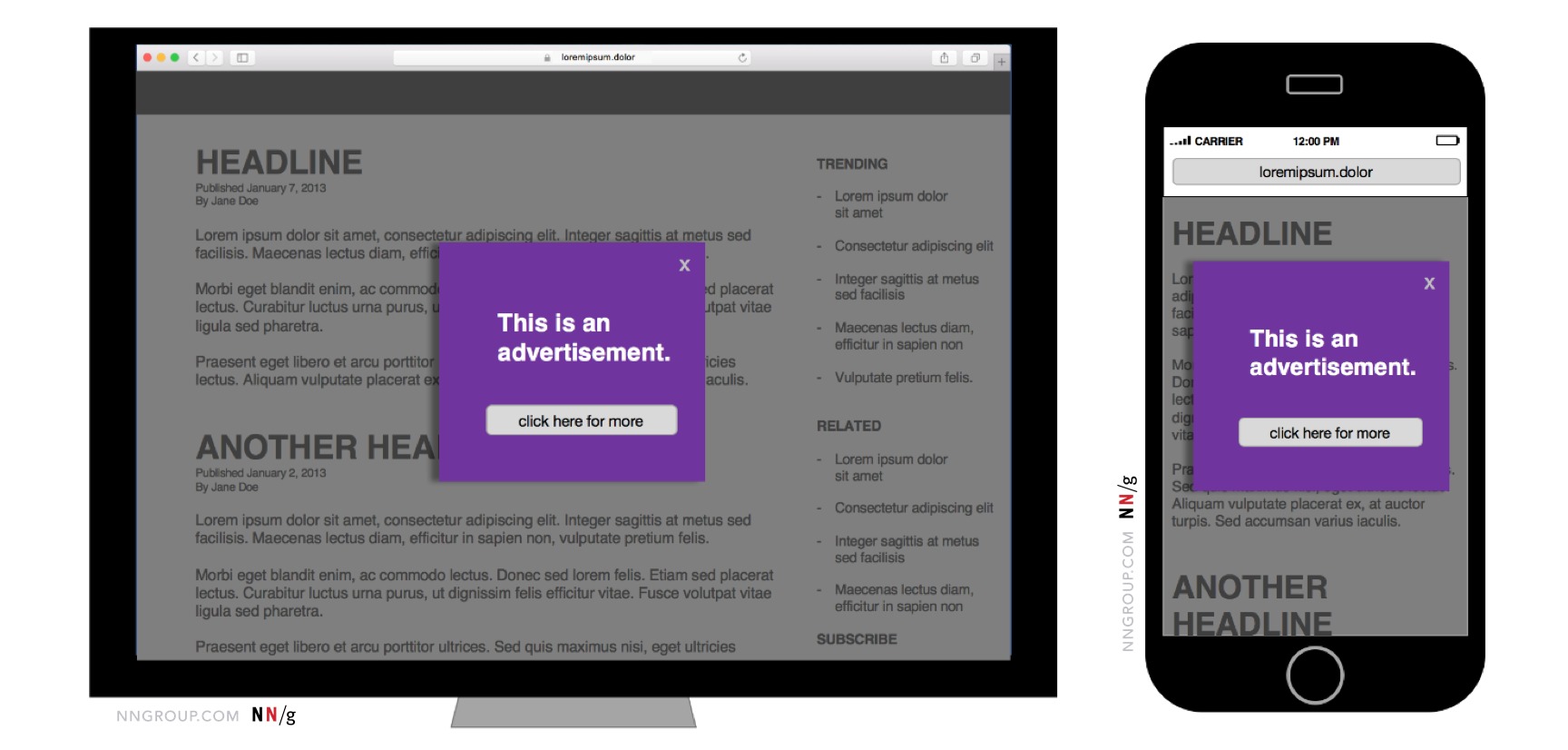 Tóm tắt: Quảng cáo kiểu modal, quảng cáo sắp xếp lại nội dung, và quảng cáo bật video tự động nằm trong nhóm các quảng cáo bị ghét nhiều nhất. Các quảng cáo gây khó chịu trên máy bàn là không thể chấp nhận được trên di động.