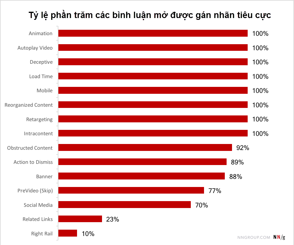 Trên nền tảng đó, chúng tôi quyết định thực hiện một nghiên cứu để kiểm tra xem hiện tại kỹ thuật quảng cáo nào gây rối và gây hại nhất cho trải nghiệm của người dùng hiện đại.