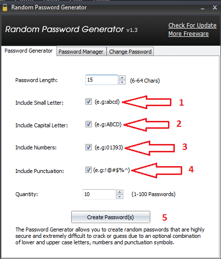 - Cuối cùng sau khi xong xuôi đâu vào đấy các lựa chọn ở trên, chúng ta nhấn vào nút Creat Password ở vị tí số 5 để chương trình sinh mật khẩu tự động.