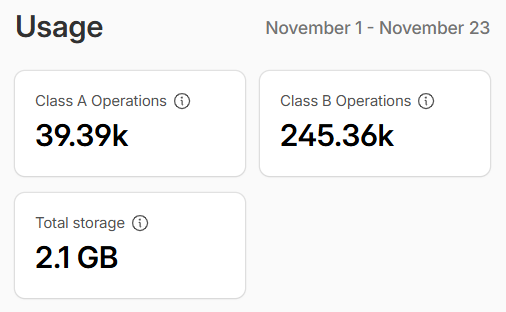 Lưu ý nhỏ: Backup sẽ tăng sử dụng Class B Operations (các hoạt động lớp B), mặc dù vậy với 10 triệu operation miễn phí hàng tháng thì như trường hợp 33 ngàn ảnh của tôi, ngày nào cũng backup thì cũng chỉ dùng đến 1 triệu operation.