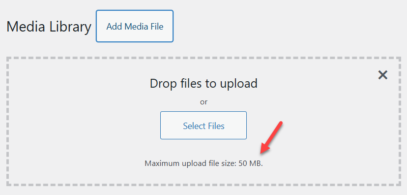 Giờ quay ra WordPress, vào phần upload media, bạn sẽ thấy dung lượng tối đa cho phép đã tăng lên 50MB: