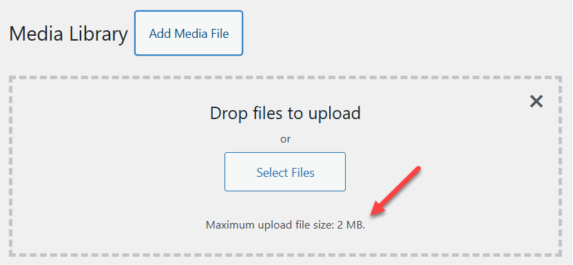 Ví dụ vào WordPress vừa cài mới, bạn vào phần upload media có thể thấy thông tin giới hạn này: