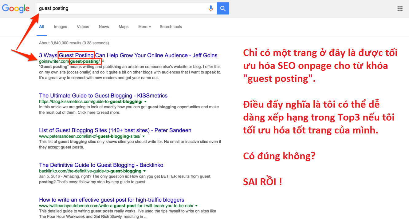 Quay lại ví dụ về SERP cho từ khóa “guest posting”: