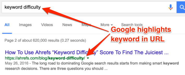 #3 Google sẽ tự động làm nổi bật từ khóa bạn tìm kiếm trong URL của đoạn trích tìm kiếm: