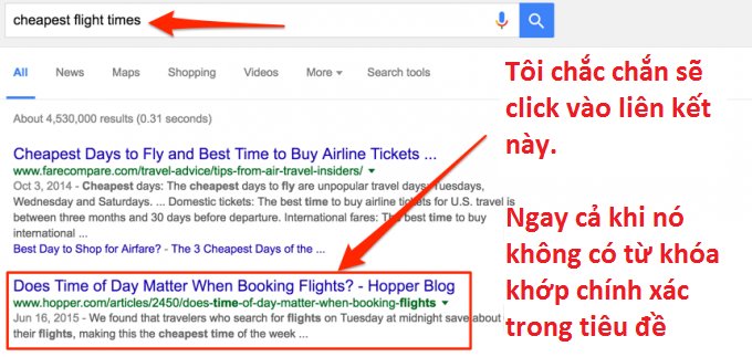 Bạn thường có thể tạo một tiêu đề rất hấp dẫn mà không có từ khóa trong đó nhưng nó vẫn có thứ hạng tốt: