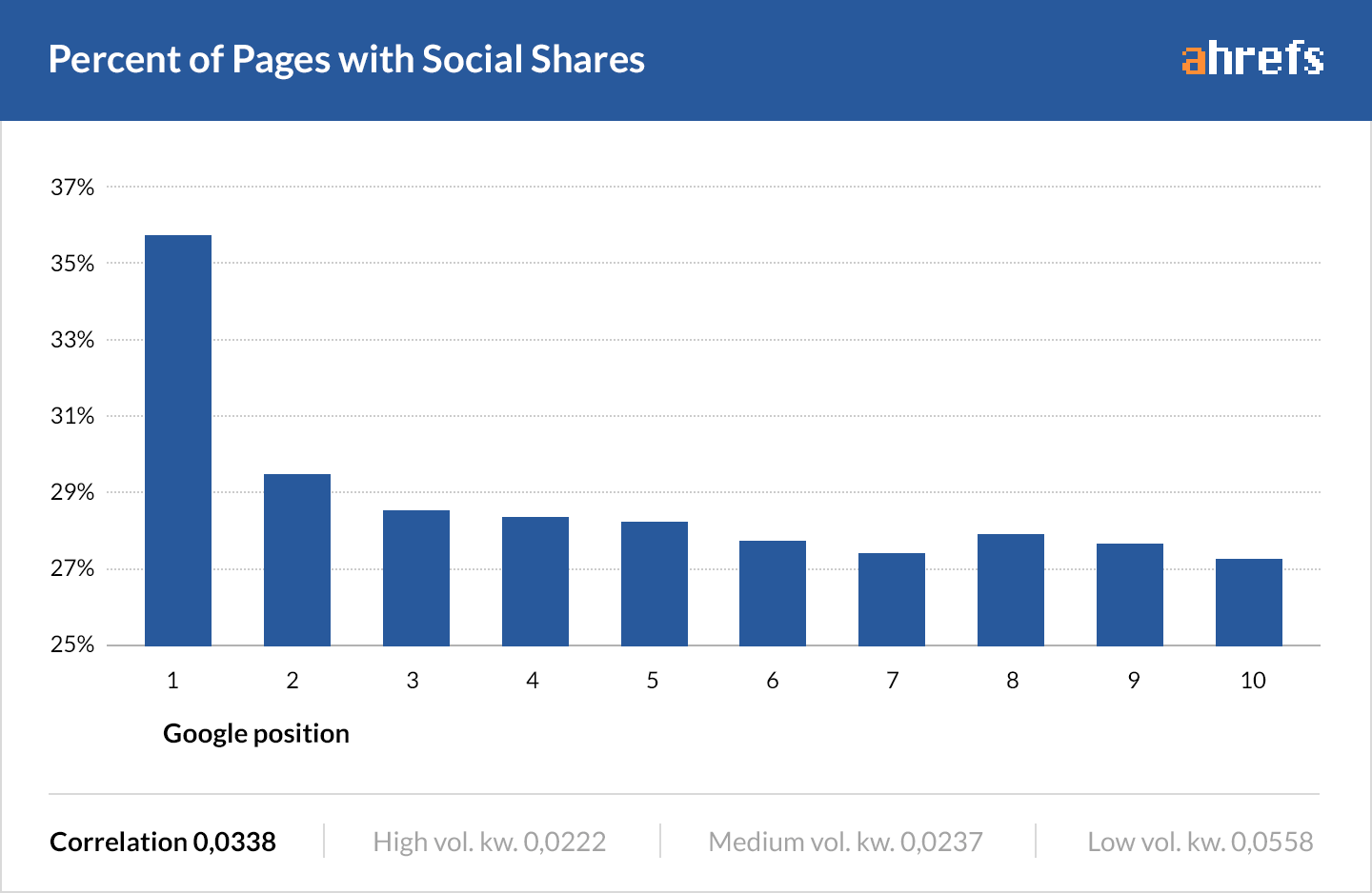 Có đến gần 70% các trang trong top 10 Google không có bất kỳ lượt chia sẻ nào (dựa trên dữ liệu mẫu của chúng tôi).