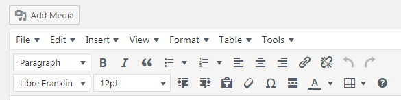 Bên trái là tên font (có tên Libre Franklin), bên phải là kích cỡ chữ (12pt).