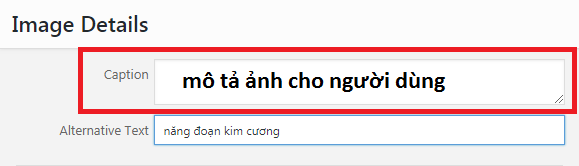Nếu Alt được dùng dành riêng cho SEO (máy tìm kiếm) thì phần Caption / Chú thích là phần người biên tập viết thêm nội dung mô tả ảnh cho người dùng đọc:
