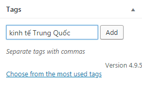 Khu vực điều chỉnh thẻ / tags nằm ngay trên Ảnh đại diện và nằm dưới Chuyên mục.