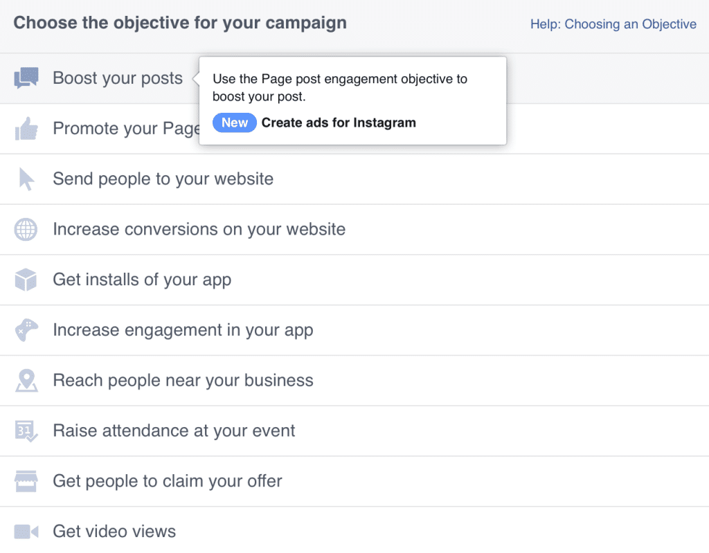 Facebook yêu cầu các nhà quảng cáo thực hiện bước đầu tiên là lựa chọn mục tiêu khi tạo quảng cáo trên Facebook.