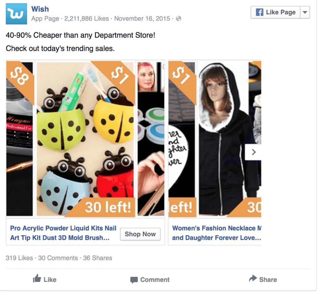 Hãy nghĩ về số tiền phải trả cho quảng cáo trong suốt giải Super Bowl (giả bóng bầu dục rất hấp dẫn đối với người Mỹ, và quảng cáo trên đây rất đắt, giống kiểu quảng cáo vào khung giờ vàng trên VTV í) – giờ hãy tưởng tượng tất cả các marketer đều cố gắng sử dụng Facebook Ads vào ngày Black Friday và các đợt bán hàng ngày lễ, bởi vì nó xảy ra khá thường xuyên. Các thương hiệu lớn chi rất nhiều tiền, làm tăng chi phí quảng cáo cho tất cả mọi người (vâng, cảm ơn Walmart).