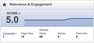 Điểm liên quan càng cao, số tiền bạn cần trả càng ít; Facebook trực tiếp xác nhận điều này. Và như kinh nghiệm chúng tôi có được, chúng tôi cũng xác thực điều ấy. Chúng tôi chạy cùng lúc hai quảng cáo như nhau, một cái được nhắm đối tượng kỹ càng (với điểm liên quan là 8) và cái còn lại thì dửng dưng trong việc nhắm đối tượng (điểm liên quan là 2,9). Quảng cáo có điểm liên quan là 8 nhận được số lượng click cao hơn 4 lần với cùng một ngân sách, khi chúng tôi nhấn mạnh vào chi phí trên mỗi click (cost per click).