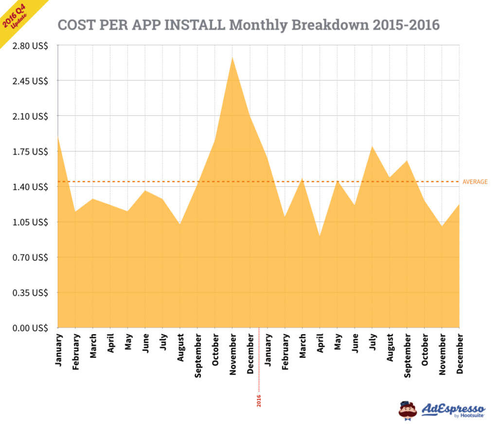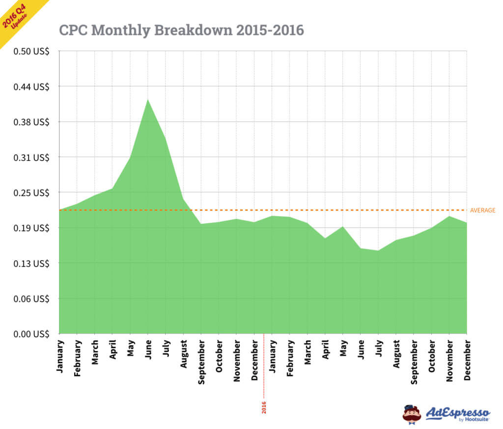 Chúng ta sẽ xem xét các dữ liệu liên quan nhất đến chi phí quảng cáo Facebook trung bình của năm 2016 (với việc nhấn mạnh vào Quý 4).
