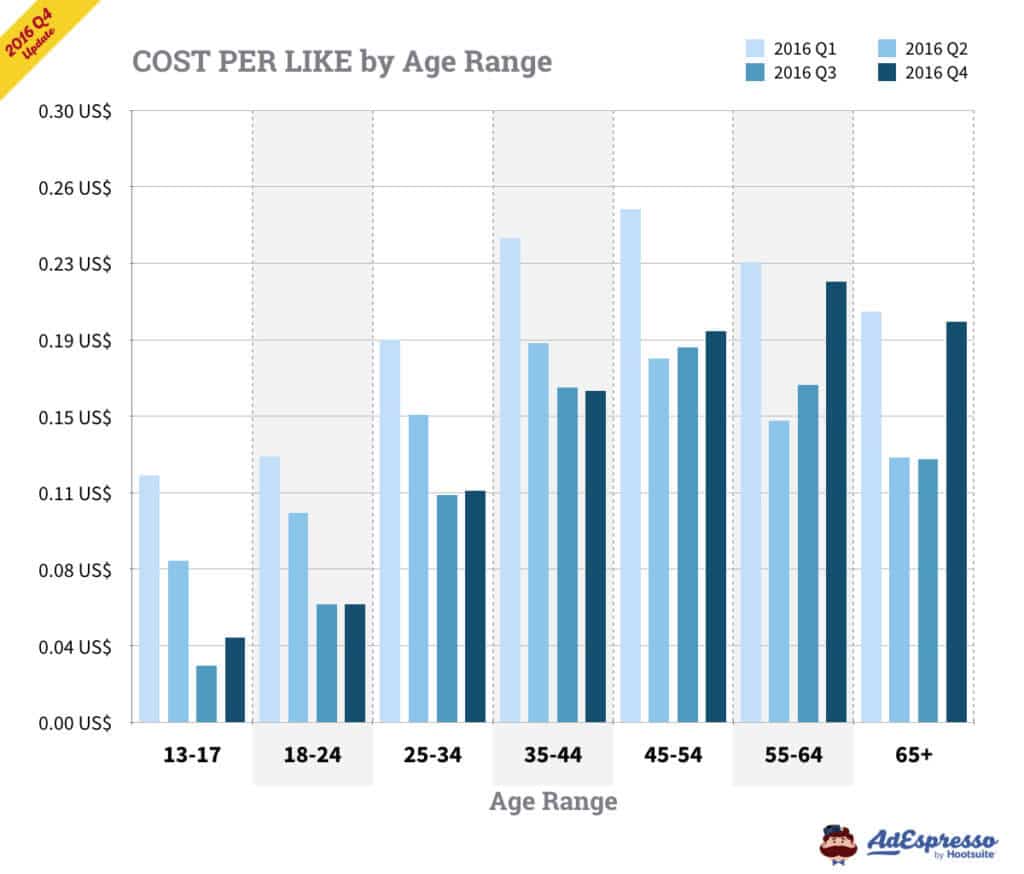 Chi phí trên mỗi lượt like tính theo độ tuổi: