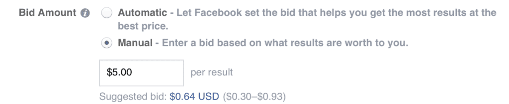 Là nhà quảng cáo, điều đấy phụ thuộc vào bạn, bạn sẵn sàng trả bao nhiêu cho quảng cáo – bạn có thể thực sự điều chỉnh thủ công (manually adjust) tính năng này trong khu vực giá và đấu thầu (pricing and bidding section). Nếu bạn không làm điều này, Facebook sẽ tự động tính toán giá thầu cho bạn dựa trên ngân sách và độ dài thời gian bạn chọn để chạy quảng cáo.