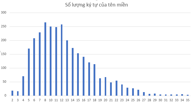 So sánh thì tên miền .vn không có dấu gạch ngang lọc ra trong mẫu 121.766 tên miền .vn có độ dài trung bình là 9,83 và độ lệch chuẩn 4,27. Tỷ lệ tên miền có dấu gạch ngang có 3, 4 ký tự ít hơn hẳn tên miền có số ký tự tương ứng không có dấu gạch ngang.