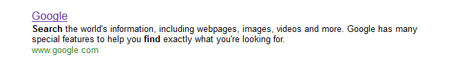 Ví dụ tốt nhất về thẻ meta description và cách máy tìm kiếm sử dụng chúng là từ chính bản thân các máy tìm kiếm. Hãy cùng xem xét cách Google viết thẻ meta description cho chính nó.