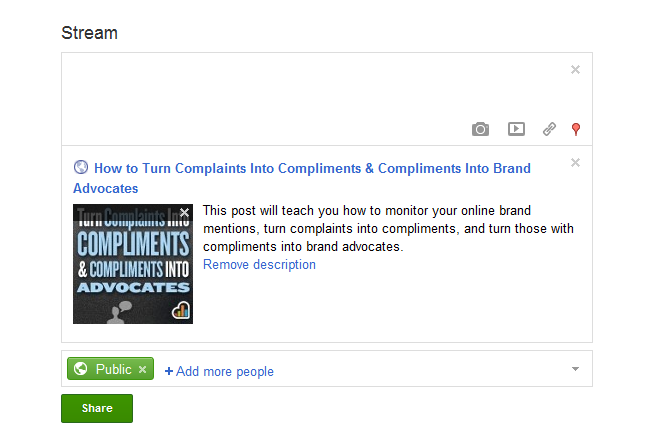 Google+, mặt khác, sẽ chỉ cho phép bạn xóa mô tả mà thôi.