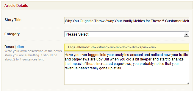 Một vài ví dụ về các mạng sử dụng nội dung trong thẻ meta description là: Digg, BizSugar, và My SEO Community. Và bất cứ mạng xã hội bookmarking / voting nào xây dựng trên hệ thống CMS Pligg cũng sẽ sử dụng thẻ meta description trước. Đúng là bạn có thể chỉnh sửa mô tả trên những mạng này, tuy nhiên bạn không thể chắc chắn được liệu rằng những người khác khi chia sẻ bài viết có làm như vậy không. Thêm vào đó, nếu bạn không phải sửa mô tả, bạn tiết kiệm được công sức mỗi khi bạn chia sẻ bài của mình.