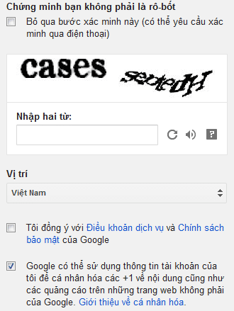 - Tiếp đến là thông tin liên quan đến chống đăng ký Spam – là một CAPTCHA gồm 2 từ.