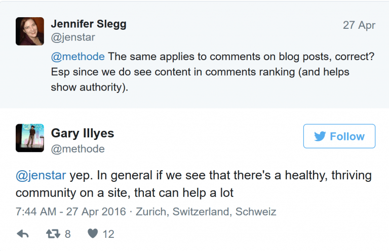 Đấy là lý do vì sao tôi không bất ngờ khi Google nói rằng có một cộng đồng sôi động trên site của bạn có thể giúp đỡ rất nhiều cho việc thăng hạng: