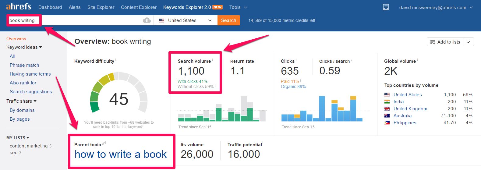 Bởi ví hóa ra là ‘book writing’ có chủ đề cha ‘how to write a book’, cái có hơn 26 000 lượt tìm kiếm mỗi tháng!