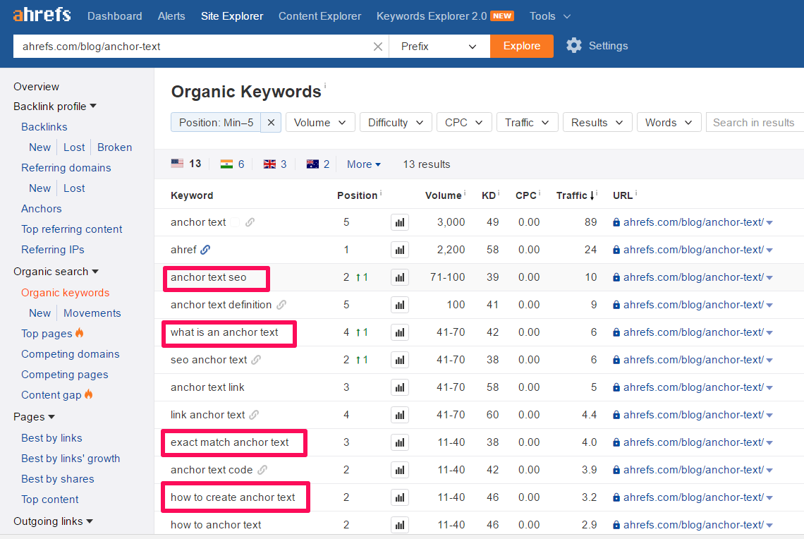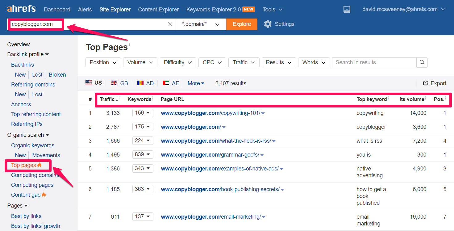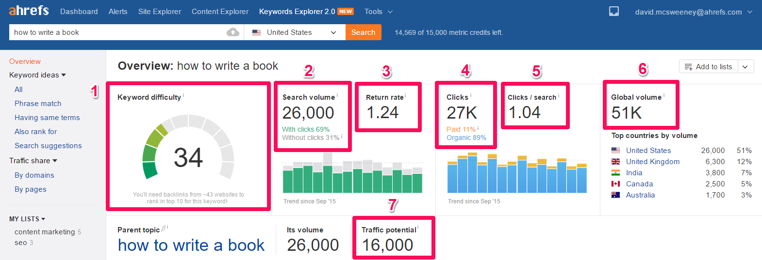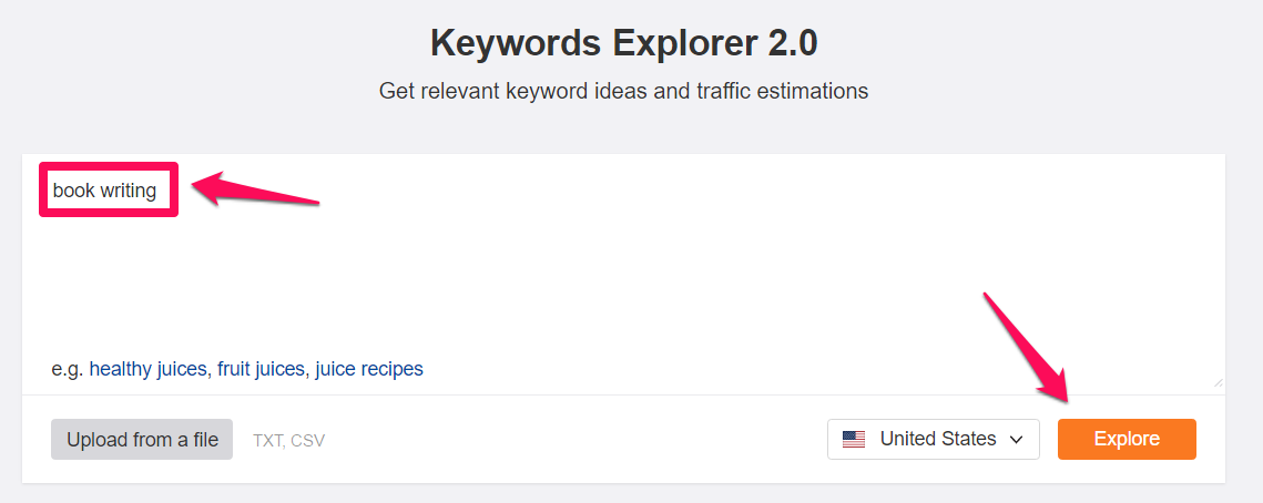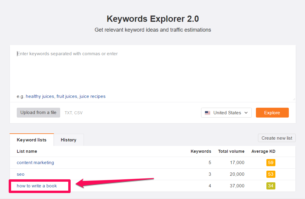 Keywords Explorer > Enter keyword > Explore