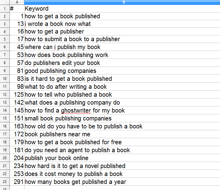 Chúng ta vẫn tiếp tục chủ đề lúc trước và sử dụng ‘book writing’ như là từ khóa hạt giống.