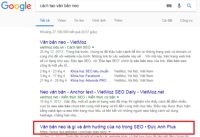 Trong vài kết quả đầu tiên, chúng ta có thể thấy rằng Google nhận ra ‘các bức ảnh’, ‘các bức hình’ và ‘hình ảnh’ có nghĩa tương tự nhau. Trang này được thăng hạng cho tất cả từ khóa đó, dù không được tối ưu hóa trực tiếp cho chúng.