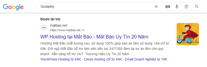Ví dụ về quảng cáo khi tra từ khóa có thương hiệu đối thủ: