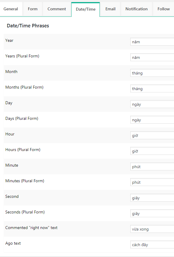 Để Việt hóa các bạn vào phần sau (Comments > Phrases):