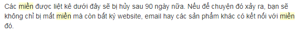 - Hết hạn: khi tên miền đạt đến số năm bạn đăng ký khi mua lúc đầu. Ví dụ nếu bạn đăng ký thành công tên miền vào ngày 01/01/2017, thời hạn là 2 năm, thì ngày 02/01/2019 là ngày tên miền hết hạn.