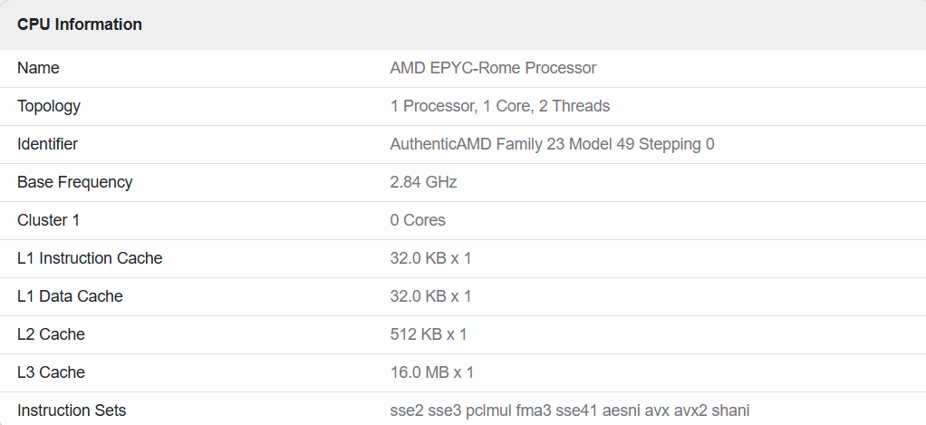 Ví dụ, khi tôi kiểm tra một VPS 2GB RAM, 2 lõi CPU trên Vultr, kết quả trên terminal thông báo như sau: