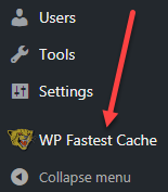 Sau khi cài đặt, nhìn vào khu vực bên trái, bạn nhấn vào WP Fastest Cache để tiến hành các thiết lập.