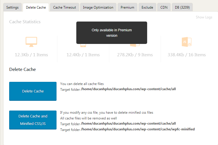 - Delete Cache and Minified CSS/JS: Nghĩa là xóa hết cache, bao gồm cả CSS và JS (đã được nén)
