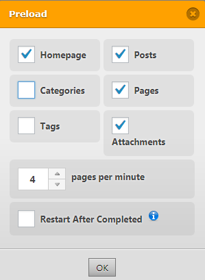 - Quá trình preload sẽ diễn ra sau khi toàn bộ các trang cache bị xóa và nó sẽ dừng lại sau khi tất cả các trang cache được tạo. Nếu bạn muốn quá trình preload diễn ra liên tục, bạn cần nhấn vào tùy chọn Restar After Completed. khi ấy preload sẽ tạo ra các trang cache và ghi đè lên các file cache trước đó, vì thế bạn không cần xóa cache nữa.
