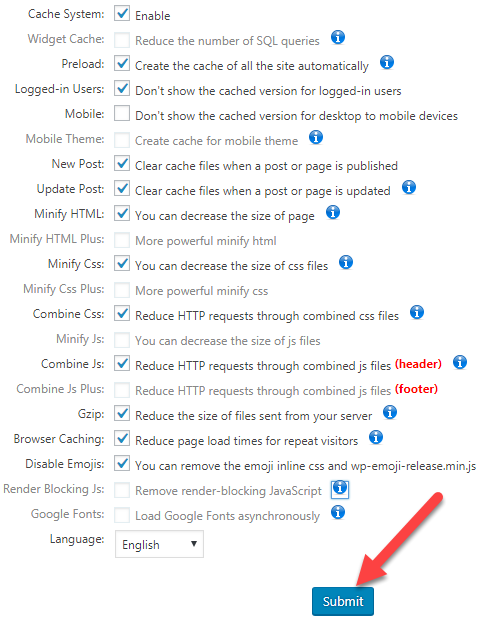 - Cache System: (Free). Nghĩa là tạo cache cho website, bạn cần tick chọn để nó bắt đầu tạo cache cho các trang.