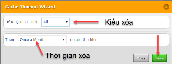 Ví dụ như hình dưới đây, nghĩa là cache sẽ tự động xóa toàn bộ (All) sau một tháng (Once a Month) rồi tạo cache mới cho cả website: