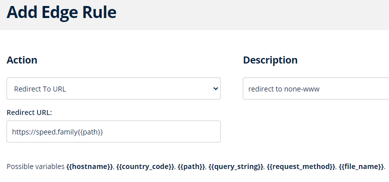 - Redirect URL: https://ten-mien-cua-ban.com{{path}} – tức là các tên miền dạng b-cdn.net và có-www sẽ được chuyển hướng về dạng không-www;