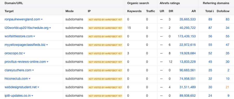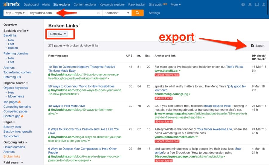 Bạn có thể paste mỗi liên kết gãy trỏ ra bên ngoài vào Site Explorer để kiểm tra xem có bao nhiêu tên miền trỏ về mà mỗi liến kết gãy có.