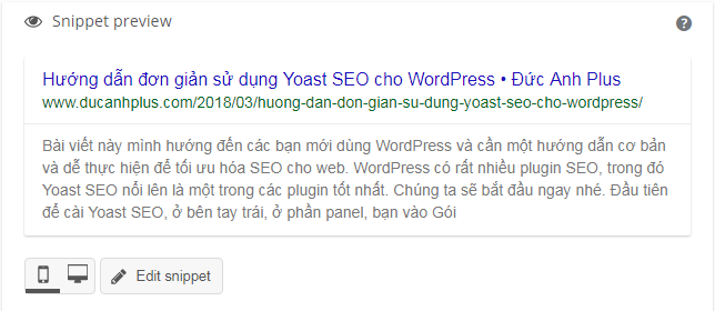 Edit snippet giúp bạn chỉnh sửa lại cách thức hiển thị trên máy tìm kiếm (có thể tách riêng di động, laptop nếu bạn muốn), theo đó bạn sửa được cả: