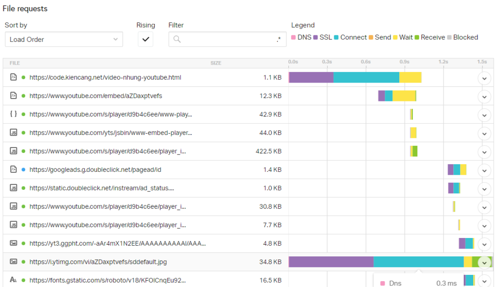 Trong bài viết tăng tốc video YouTube nhúng trong WordPress, chúng ta đã biết YouTube tải nặng như thế nào rồi, nhưng đó chỉ là mô tả tổng quan mà thôi. Trong bài này chúng ta sẽ đi vào chi tiết, để biết cụ thể YouTube tải về những file gì, dùng làm gì và nó nặng bao nhiêu (tính theo KB).